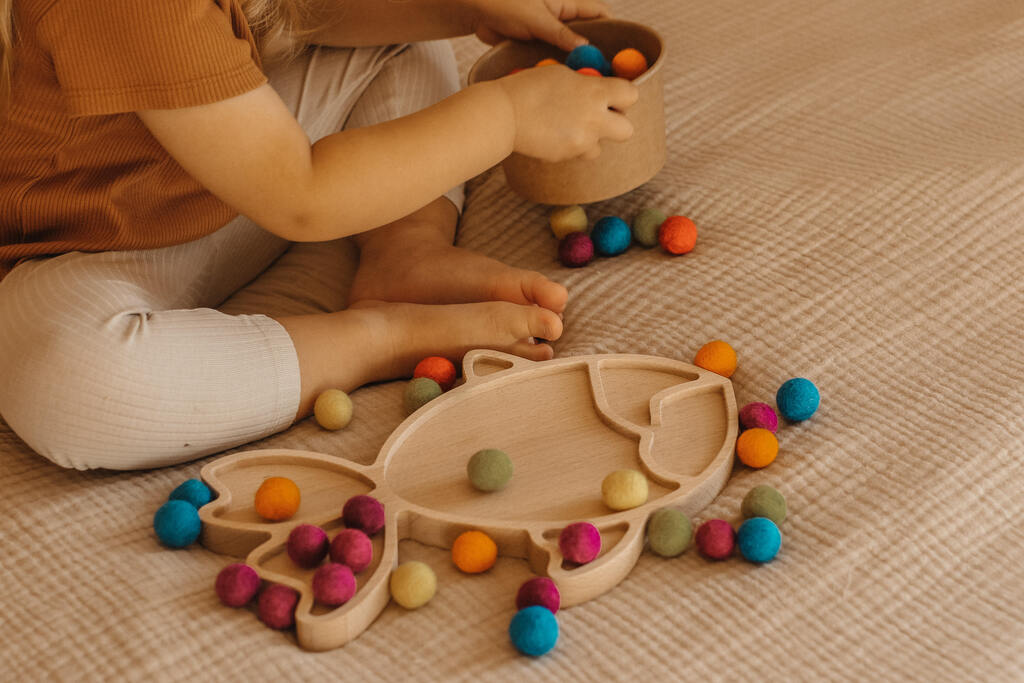 Drewniana sensoryczna wysypywanka ryba – jak się bawić tą zabawką sensoryczną?