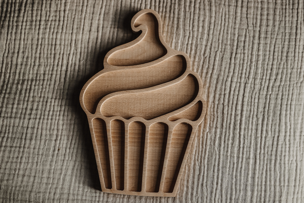 Drewniana wysypywanka sensoryczna dla dzieci- babeczka