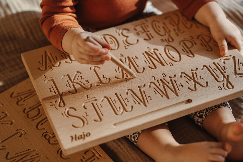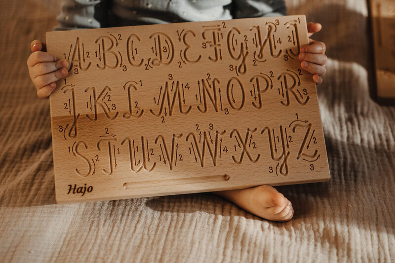 Drewniany alfabet pisany to nasz autorski pomysł, stworzony z myślą o dzieciach z trudnościami w nauce pisania liter, dzięki dodanym w tablicy grafomotorycznej strzałkom i cyfrą dziecko może krok po kroku uczyć się prawidłowo zapisywać litery. Zestaw składa się z: