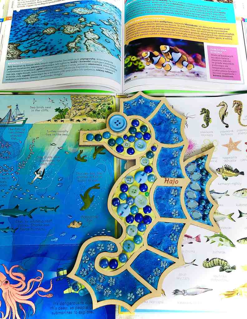 Kolorowanka sensoryczna konik morski o wymiarach 30×20 cm, całość wylana żywiącą epoksydową. Ta zabawka sensoryczna spodoba się małym fanom oceanu. Wspiera naukę przez zabawę. Można wysypywać różnymi sensorycznymi dodatkami dostępnymi w domu lub wylepiać plasteliną / ciastoliną.