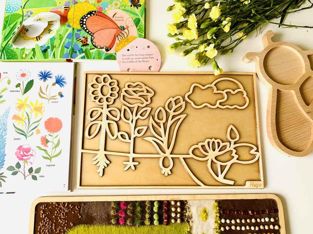 Ogródek kwiatowy to sensoryczna kolorowanka, która zapewnia mnóstwo doznań sensorycznych, dotykowych ale umożliwia również naukę o przyrodzie i kwiatach. W różnorodności siła. Kolorowankę można zarówno wylepiać, jak i wysypywać kolorowymi ziarnami, a nawet wypełniać naturalnymi płatkami kwiatów.