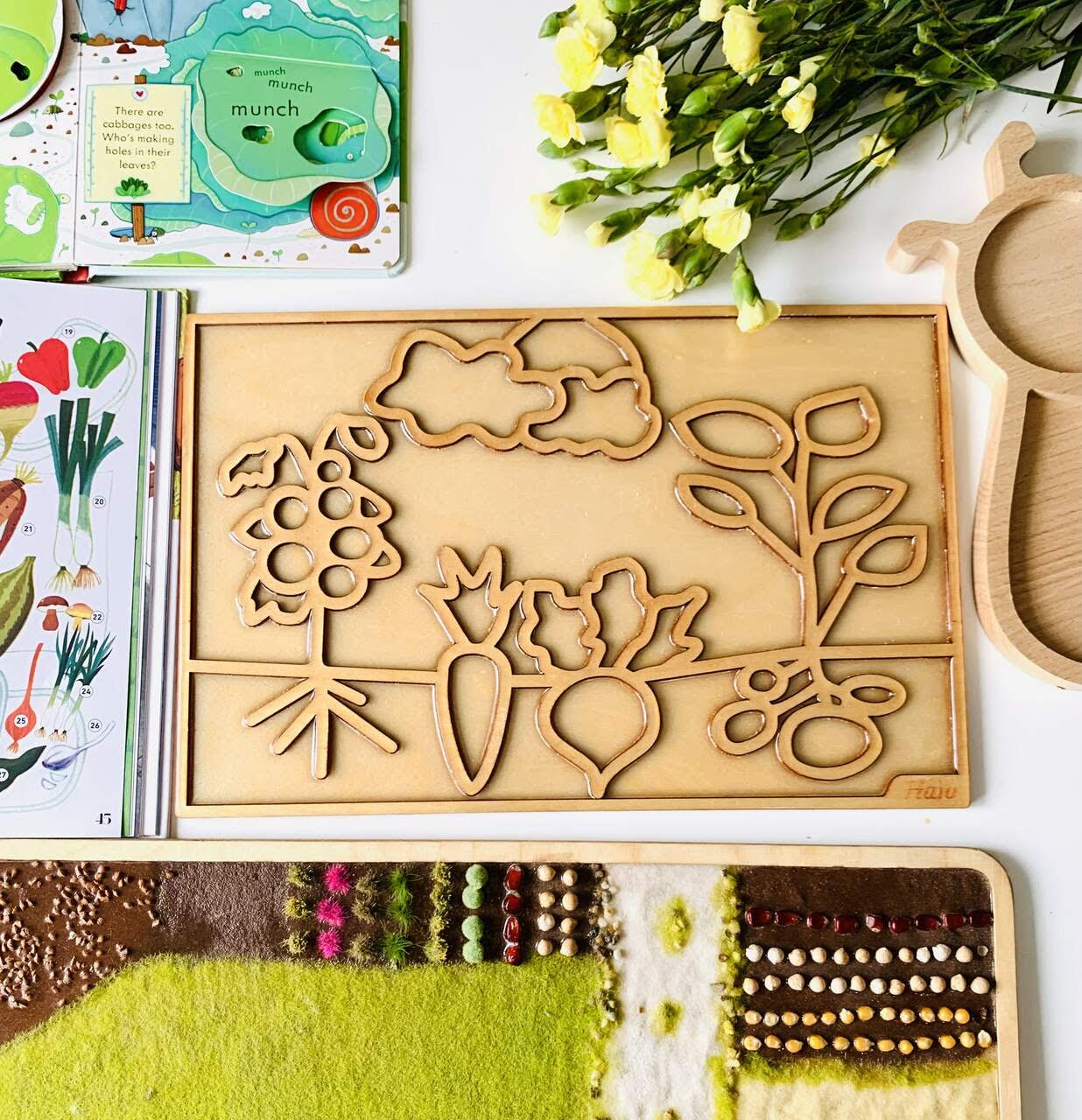 Ogródek warzywny to sensoryczna kolorowanka, która zapewnia mnóstwo doznań sensorycznych, dotykowych ale umożliwia również naukę o przyrodzie i warzywach. W różnorodności siła. Kolorowankę można zarówno wylepiać, jak i wysypywać kolorowymi ziarnami, a nawet wypełniać liśćmi i elementami zebranymi w ogrodzie.