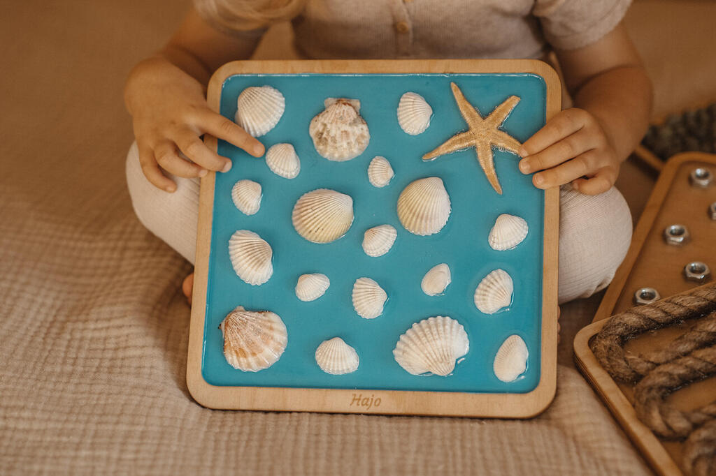 Wypełnienie: muszelki na morskim tle