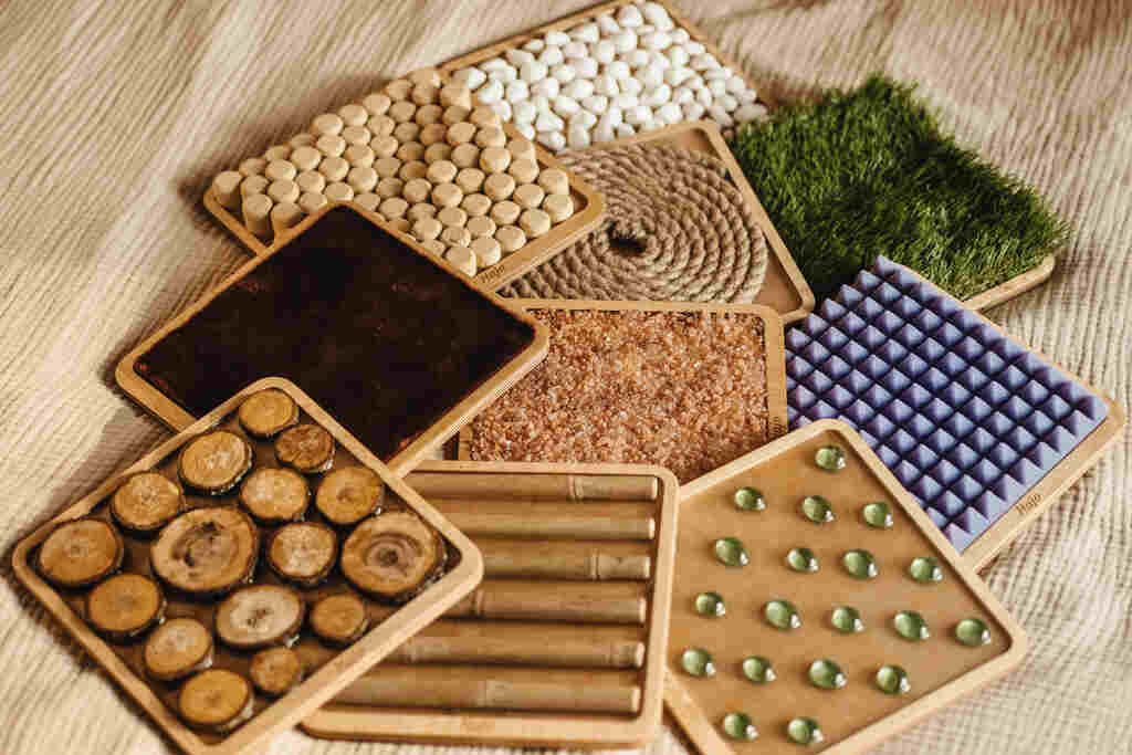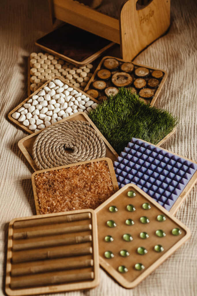 Różnorodne faktury paneli sensorycznych stymulują zmysł dotyku i pomagają dzieciom lepiej poznawać swoje ciało poprzez ruch i zabawę.