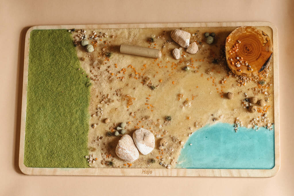 - Dotyk : Dzięki różnorodnym teksturom, dzieci mogą rozwijać swój zmysł dotyku. Gładkie kamienie, szorstki piasek i miękkie rośliny to tylko niektóre z elementów, które można znaleźć w makiecie.