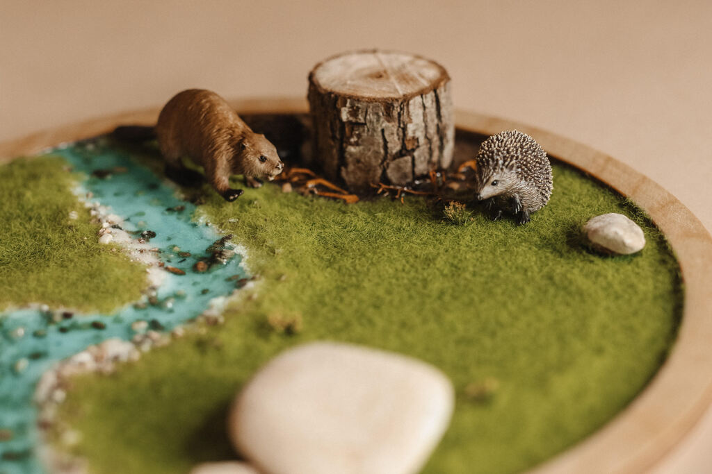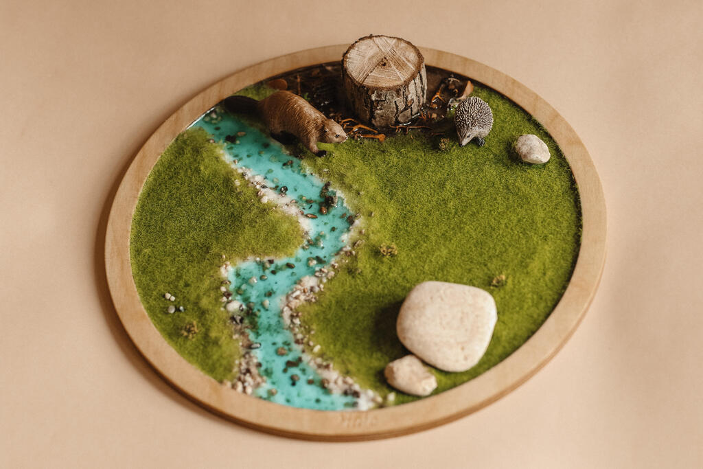 Sensoryczna makieta taca tematyczna Montessori Łąka& Las