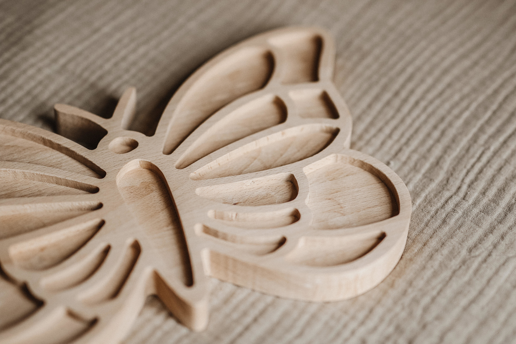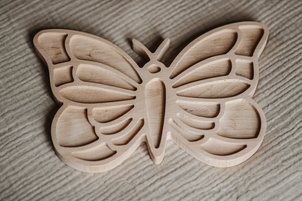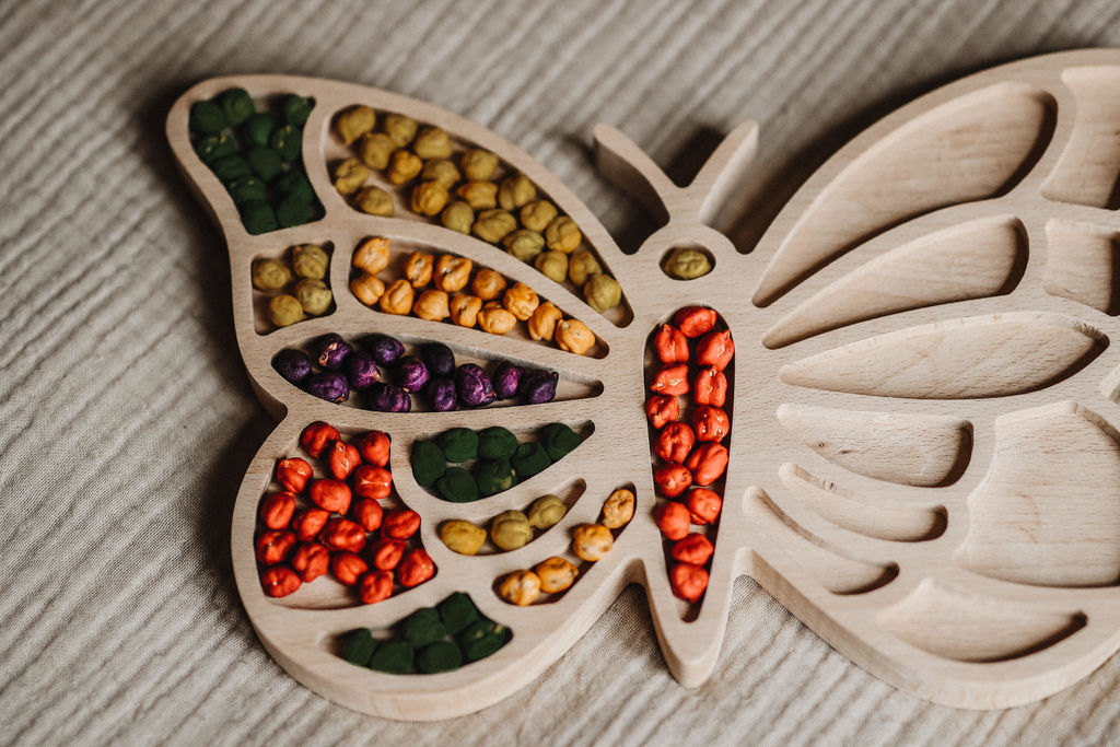 Drewniana sensoryczna wysypywanka motyl – jak się bawić tą zabawką sensoryczną?