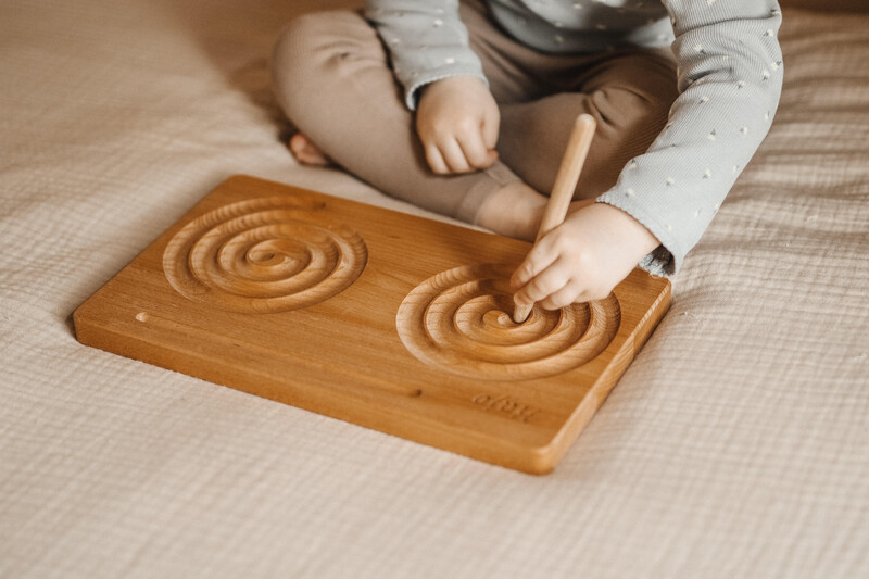 Drewniana tablica grafomotoryczna spirala 2 to drewniany panel sensoryczny który jest wielofunkcyjny :